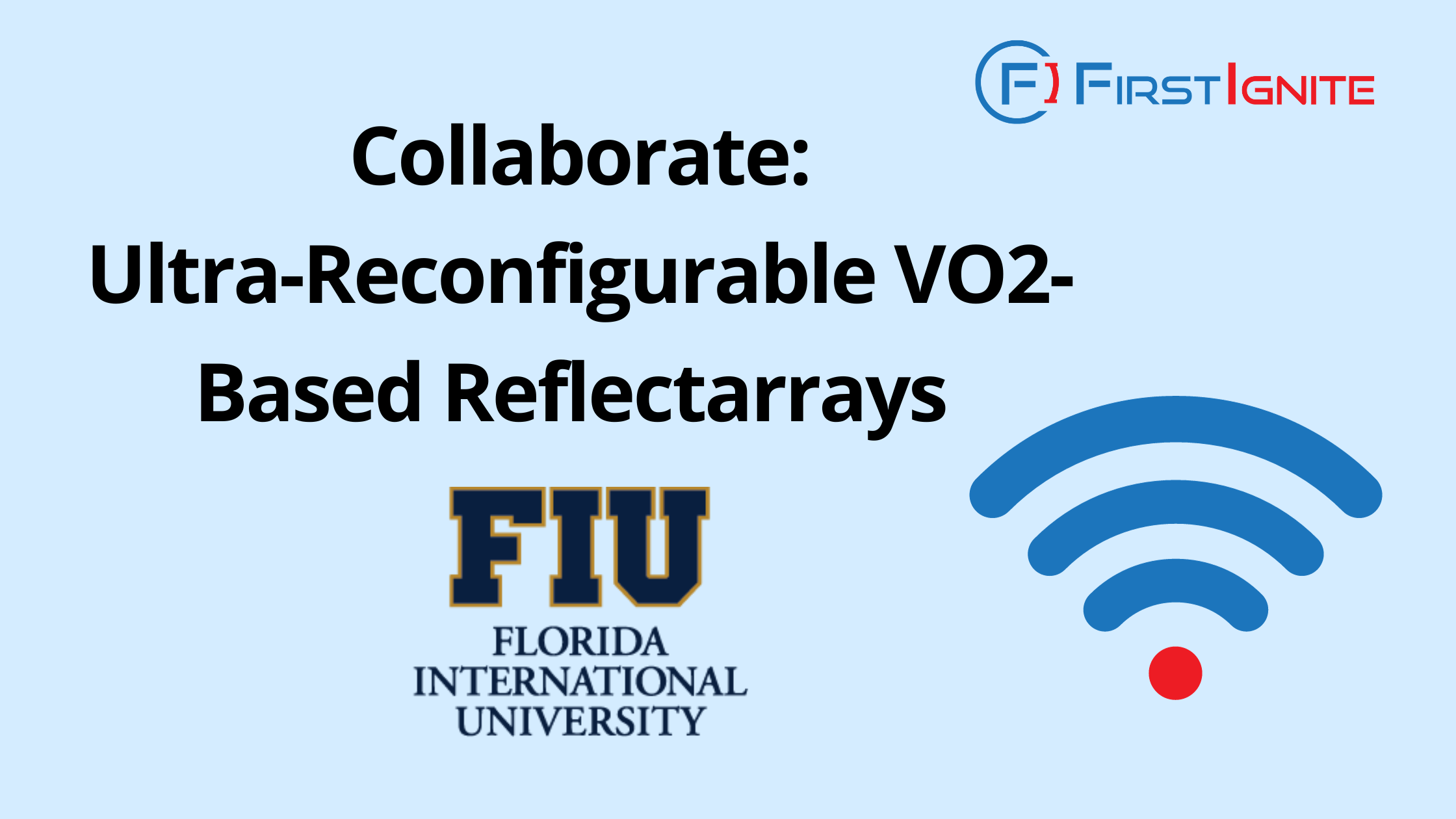 FirstIgnite is supporting the commercialization of Florida International University’s ultra-reconfigurable VO2-based reflectarrays technology, which is a platform that increases efficiency in signal transmission using the unique properties of vanadium dioxide. This innovative approach utilizes a heating element for targeted reconfiguration, ultimately enhancing signal transmission efficiency.